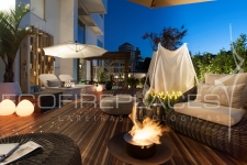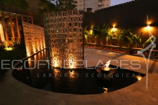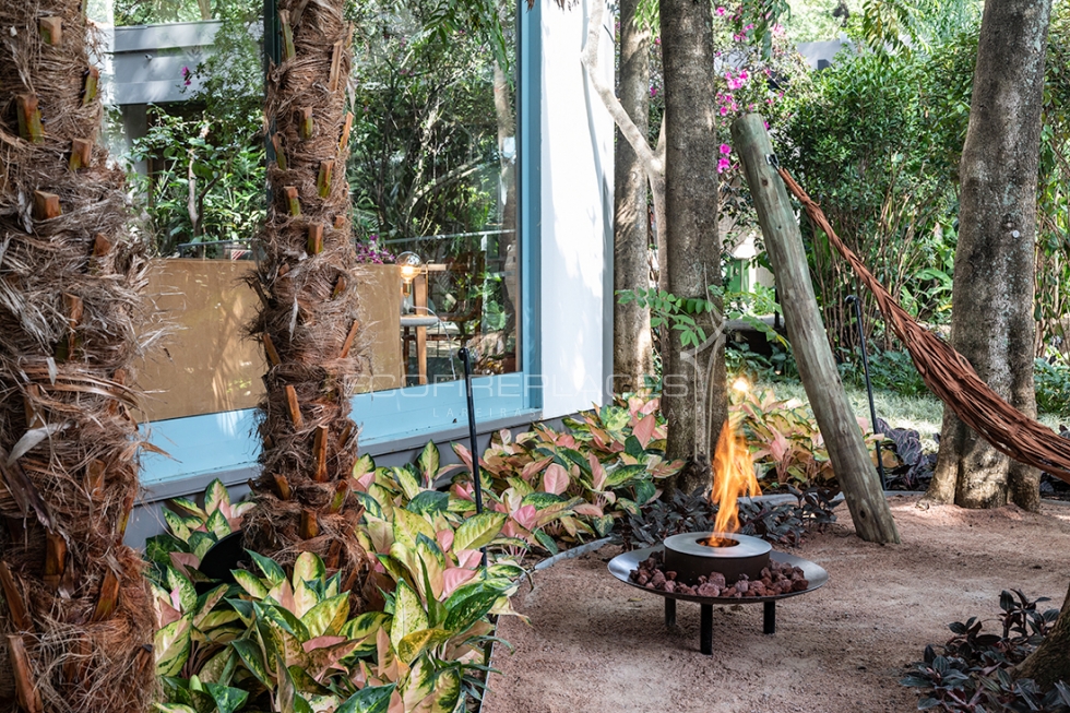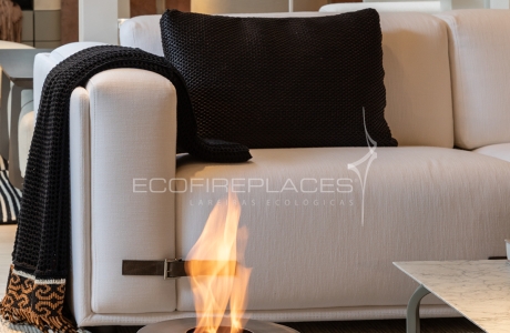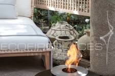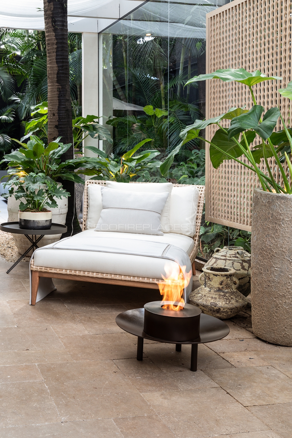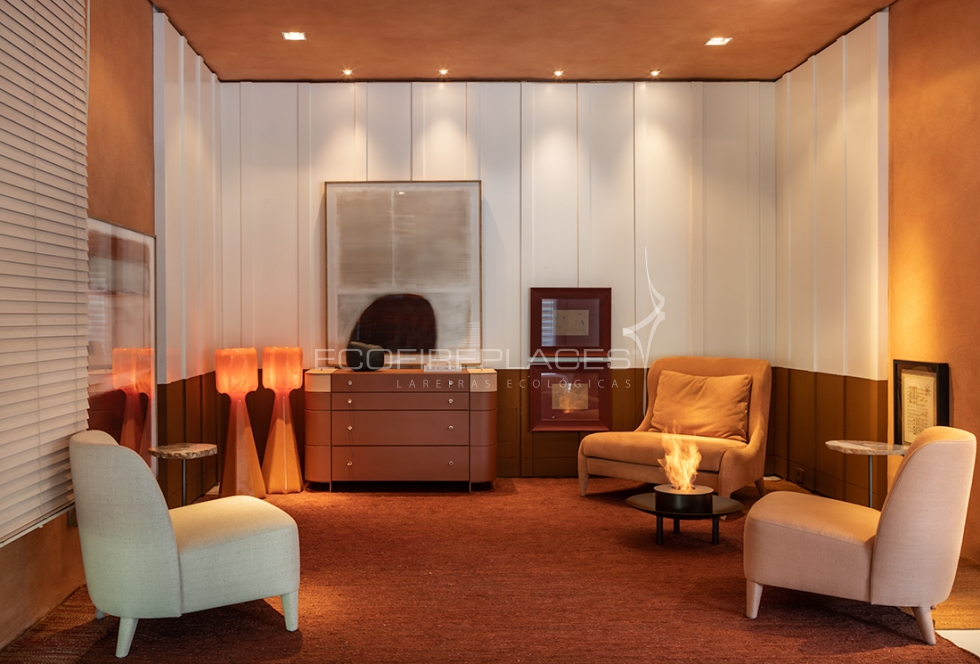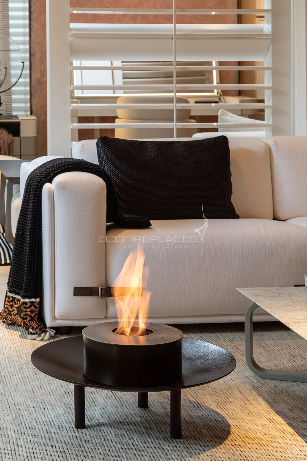 Lareira Ecológica Portátil Ecofireplaces com base em aço tipo corten e Queimador ECO 35 com capacidade de 5 litros de Biofluido. Tempo de queima em média 1 hora por litro, aquece uma área aproximada de 50 m² e pesa 15 kg. Com dimensões de Ø 60 x 26 cm. Kit com abafador, acendedor, funil e dosador.